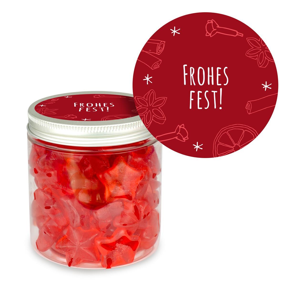 Inhalt: Fruchtgummisterne mit Glühwein- Zimt-Geschmack (ohne Alkohol)