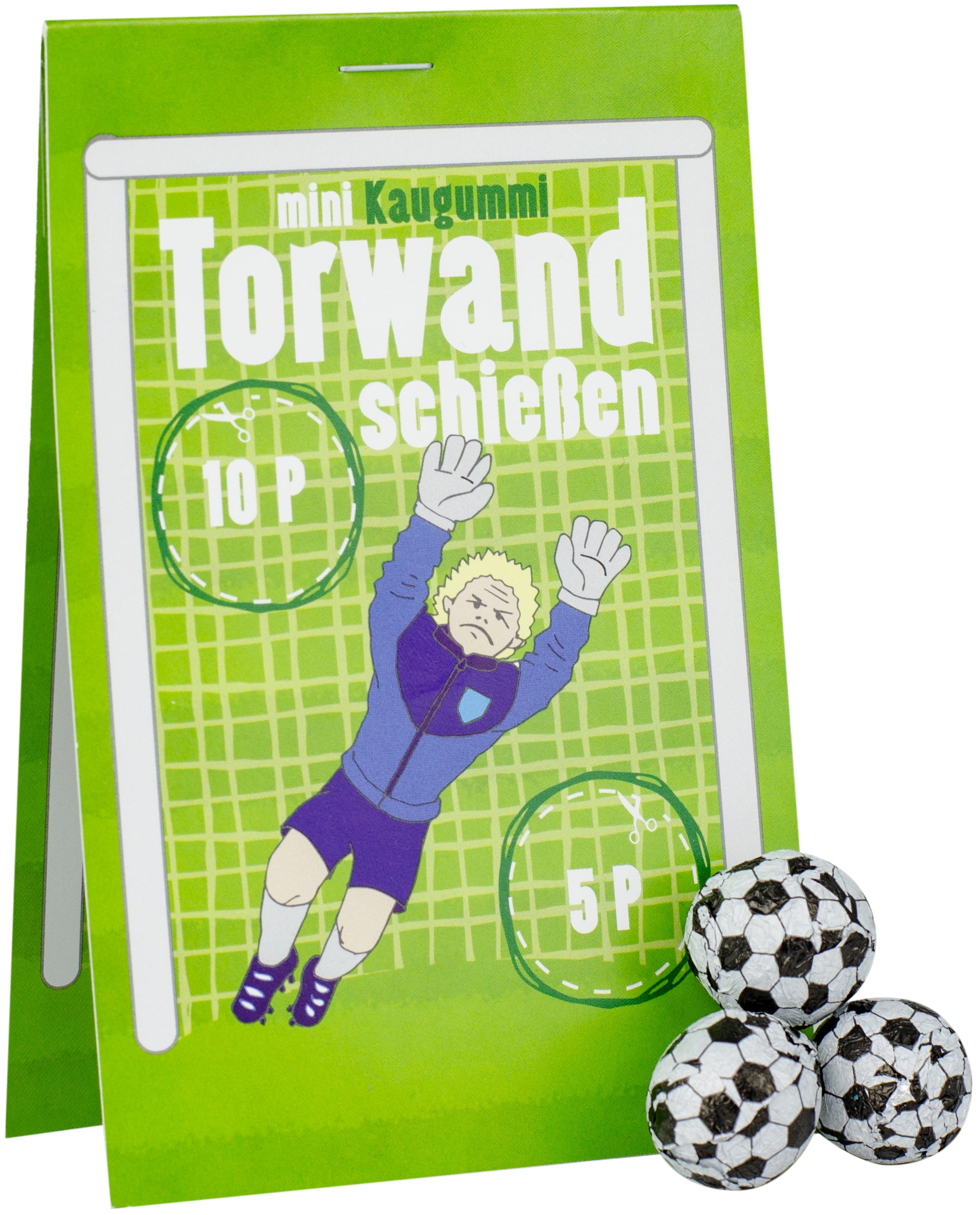 Torwandschiessen für den Tisch. Kaugummifußball platzieren, fokussieren, zielen und treffen. Die Torwand für spaßige Halbzeitpausen.